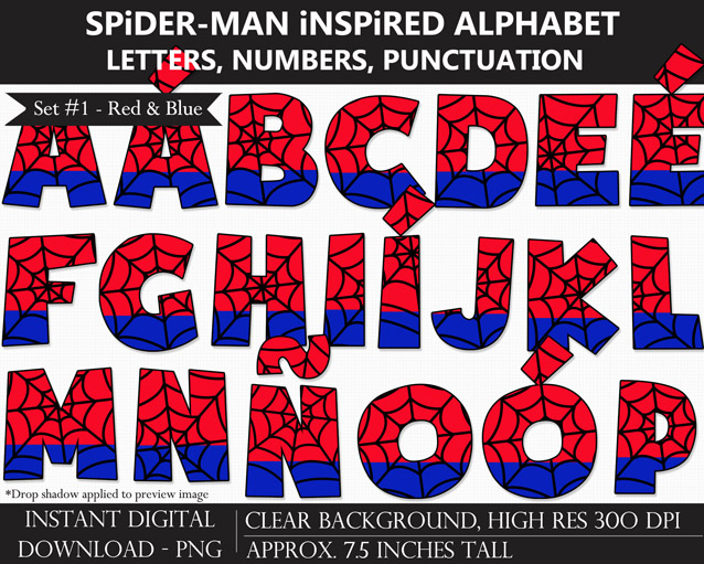 Spiderman Alphabet Font Clipart Instant Download Digital Etsy